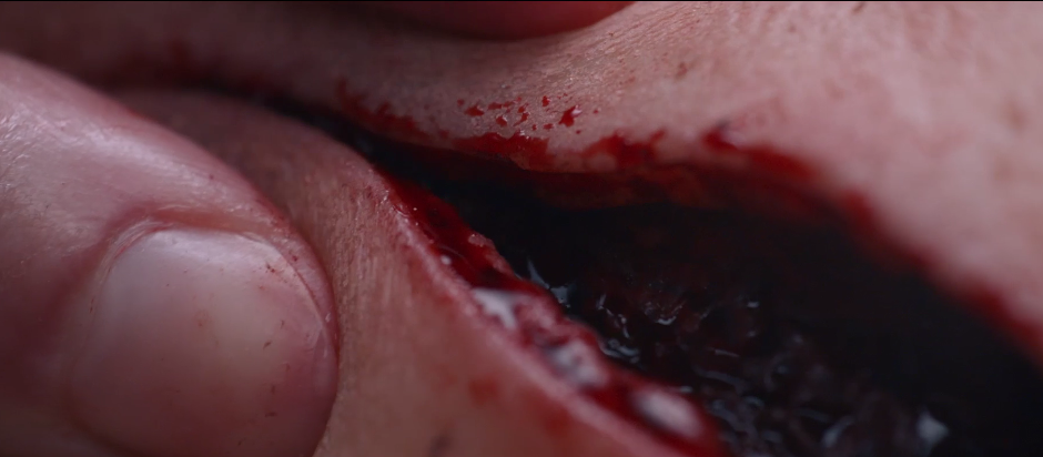 随后又用特写镜头,展示伊丽莎白背部的缝合过程。