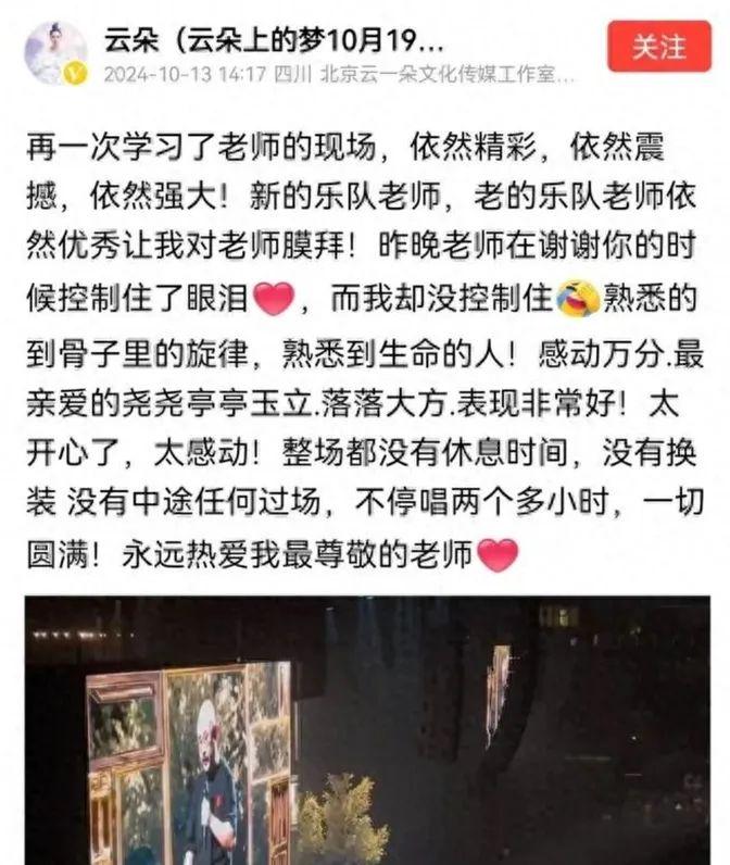 根本没矛盾,云朵现身刀郎南京演唱会,发文称:永远是尊敬的老师