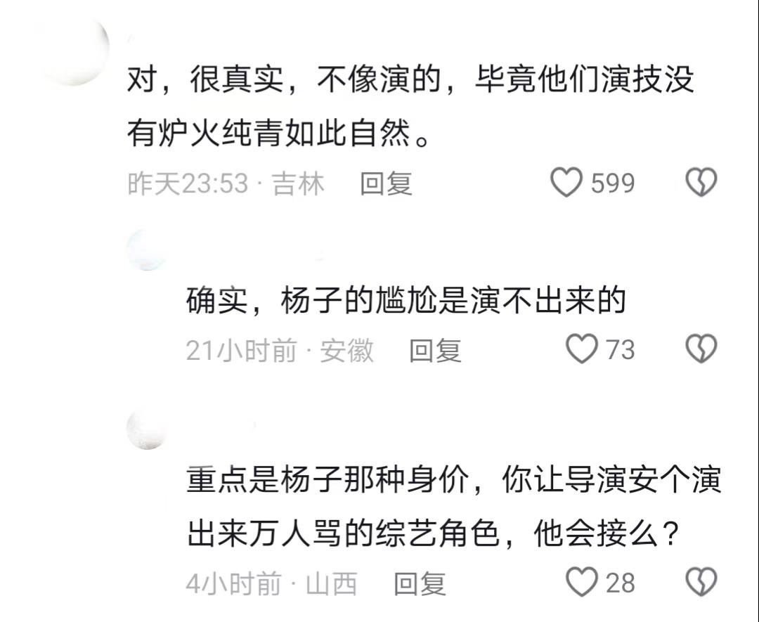 当然有质疑节目的真实性,就有人相信是真的,毕竟演技有目共睹,没到“炉火纯青”的地步。