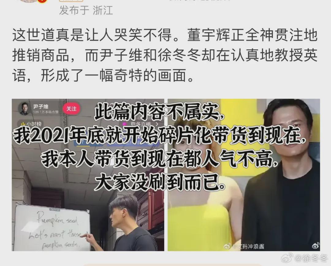 “这世道真是让人哭笑不得,董宇辉正全神贯注推销商品,而尹子维徐冬冬却在认真的教英语,形成了一幅奇特的画面。”