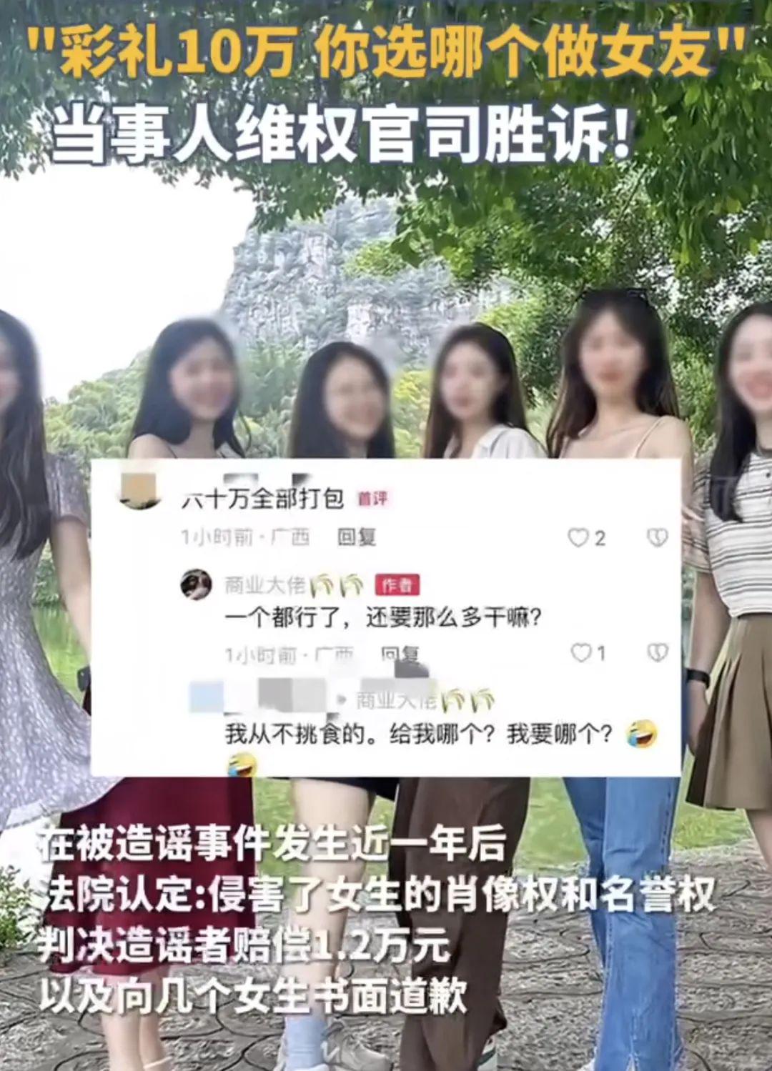 近日,曾被一名拥有30万粉丝的博主造谣“六姐妹十万彩礼做女友”的新闻再度登上热搜。2024年9月18日,广州互联网法院发布了民事判决书。9月19日,小婷收到律师短信,告知其法院认定造谣者侵害了几个女生的肖像权和名誉权,判决造谣者赔偿1.2万元以及向几个女生书面道歉。“但造谣者至今都未履行判决,我们已经向法院申请强制执行。”
