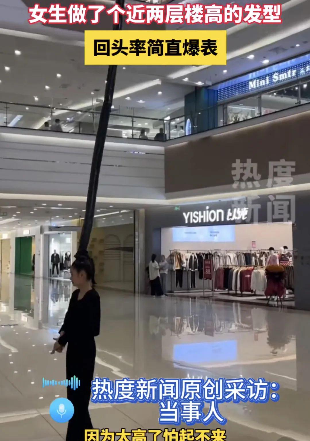 10月19日,浙江。女生做近两层楼高的发型,回头率很高。理发师称,视频里的发型是真实创作,做这个发型的女孩子之前有刷到我的视频,她觉得非常的有趣,就让我帮她做这个造型,差不多有两层楼那么高,其实发型顶上是气球。