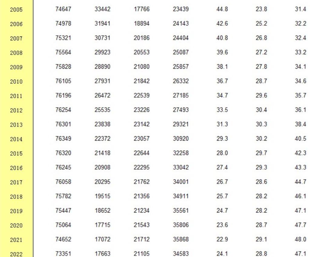 2013年是我国第二产业就业人数的巅峰,高达2.3142万人,而到了2022年为2.1105万人,少了2000万。