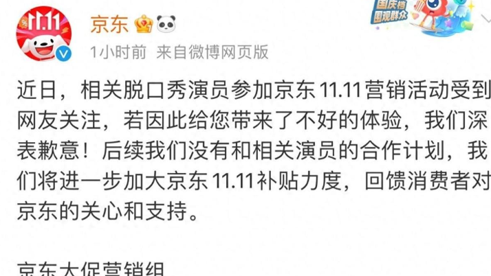 “相关脱口秀演员参加京东的促销活动,给不少用户带来了不好的体验,京东方面表示深切歉意。”这简短的一句话,宣告了这场营销活动的彻底失败。