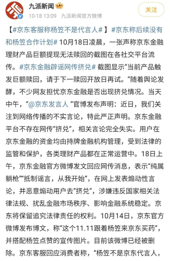 然而,这次京东的代言却成了压垮骆驼的最后一根稻草。