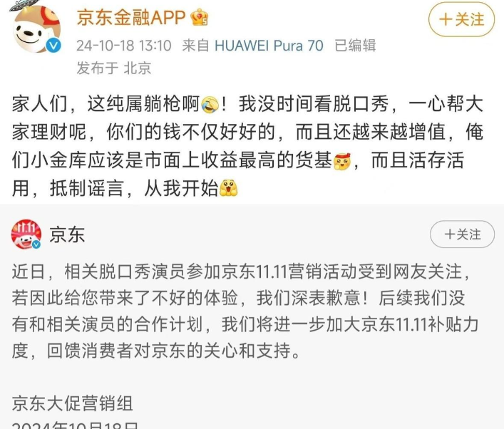 2024年10月18日,在经历了一天一夜的舆论狂欢后,京东官方账号终于发布了道歉声明。