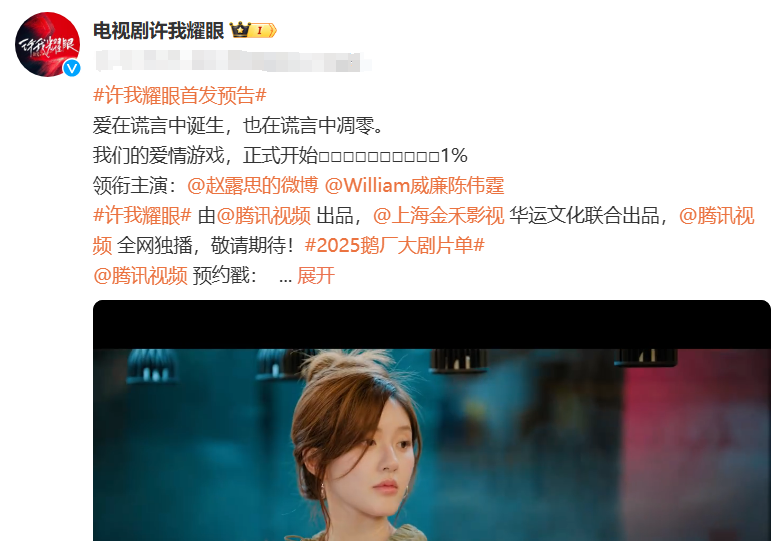 《许我耀眼》改编自小说《大乔小乔》,讲述了女主播许妍(赵露思饰)和都市精英沈皓明(陈伟霆饰)的婚姻看似人令人艳羡,实则充斥着谎言。