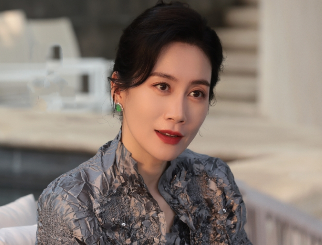 新剧中,温峥嵘饰演了于岚,穿着精致、贵气,脸上虽然带着微笑却又疏离感十足。