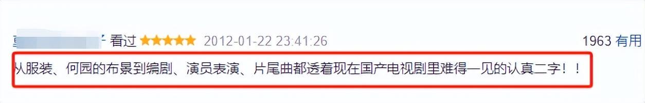 “从服装、布景,到编剧、演员表演、片尾曲都透露了如今国产剧中难得一见的认真二字。”
