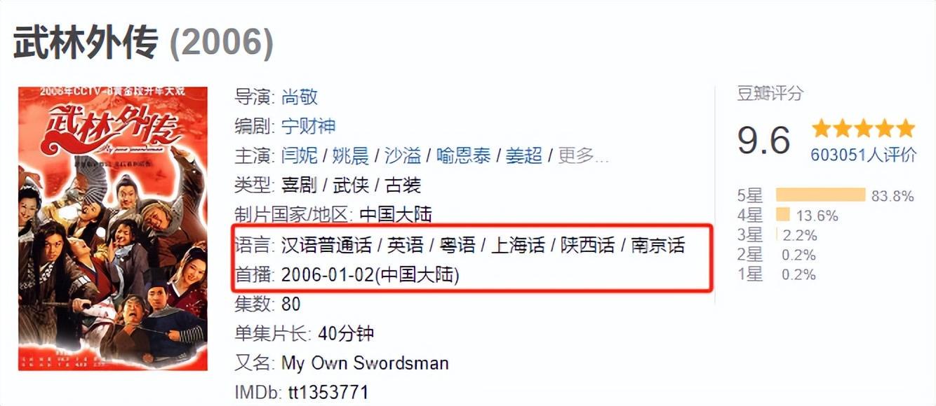 点开豆瓣,你就会发现这部剧竟然有普通话、英语、粤语、上海话、陕西话等多种语言。