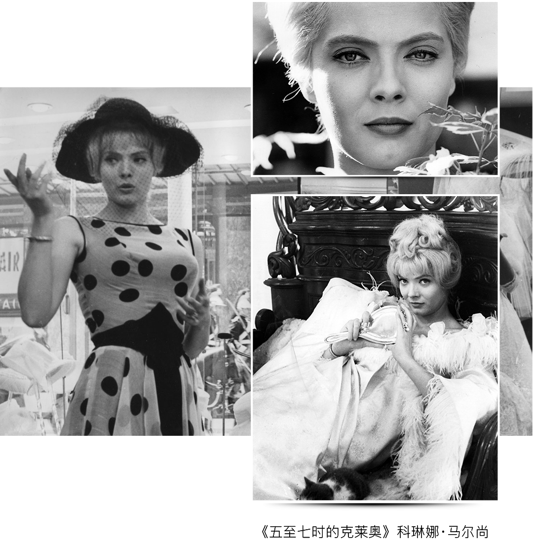 中性风格的茜宝引领了一代潮流,短发成了她的标志,当时,便有不少法国女孩效仿。不过,更多的法国女性,在那时的生活状态,更像是瓦尔达电影《五至七时的克莱奥》中所描述的样子,科琳娜·马尔尚在影片中塑造了焦虑的歌手克莱奥,一天当中,误以为自己身患胃癌的她游走于巴黎街头,与各色人等攀谈,在和一个即将奔赴阿尔及利亚战场的士兵交谈之后,她变得坦然,决定和现实和解。