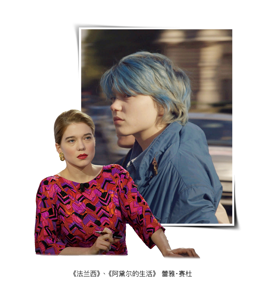 再年轻些的法国演员里,蕾雅·赛杜的电影笔者看得最多。她演过一部《法兰西》,名字便已代表了法国,她也的确有法式精髓,变化多端,顶着一头蓝色短发演《阿黛尔的生活》,酷到极致,忧郁到让观众心碎,穿着长款风衣与邦德和伊森·亨特周旋,也成为了好莱坞大片中最绚丽的法国色彩。
