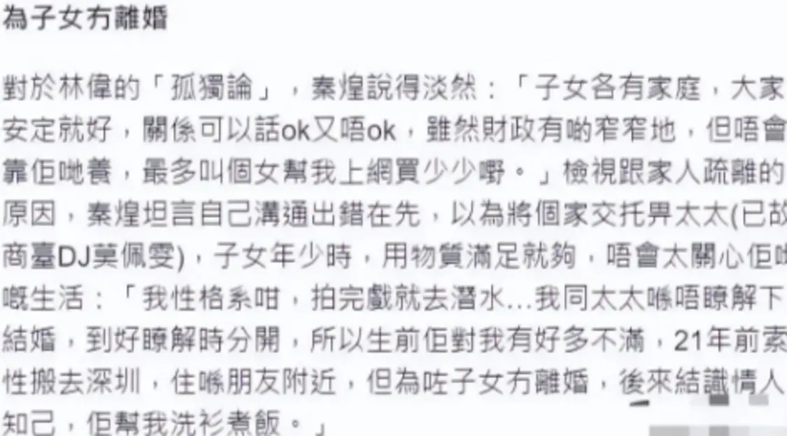 那个小情人是居住在内地的,秦煌抛妻弃子与她同居了长达20年之久,期间妻子多次提出离婚。