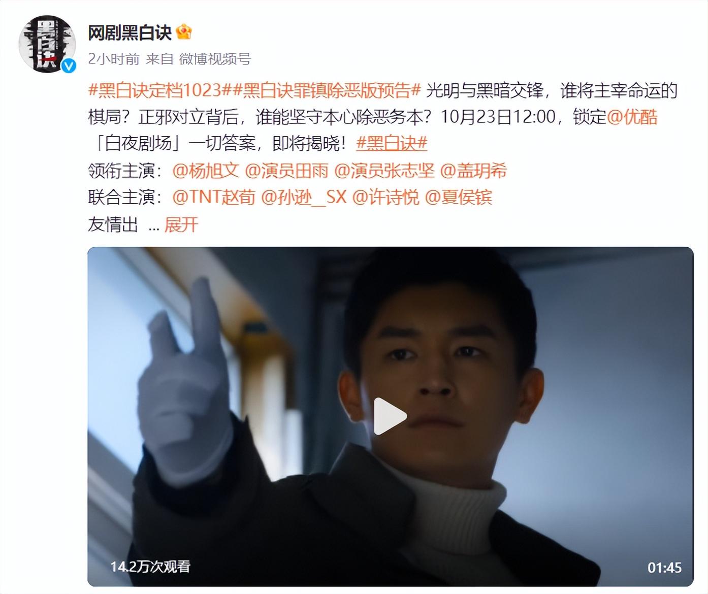 24集刑侦扫黑悬疑大剧《黑白诀》,将于10月23日,也就是明天中午十二点,登陆优酷平台正式开启首播。