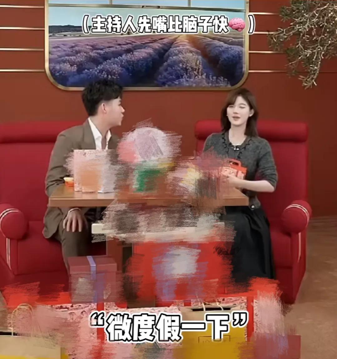 在其中的一个环节中,赵露思想夸夸直播间的设计很有品味,表示有种去度假的感觉。为了接上赵露思的话头,主持人立马互动称:微度假一下。