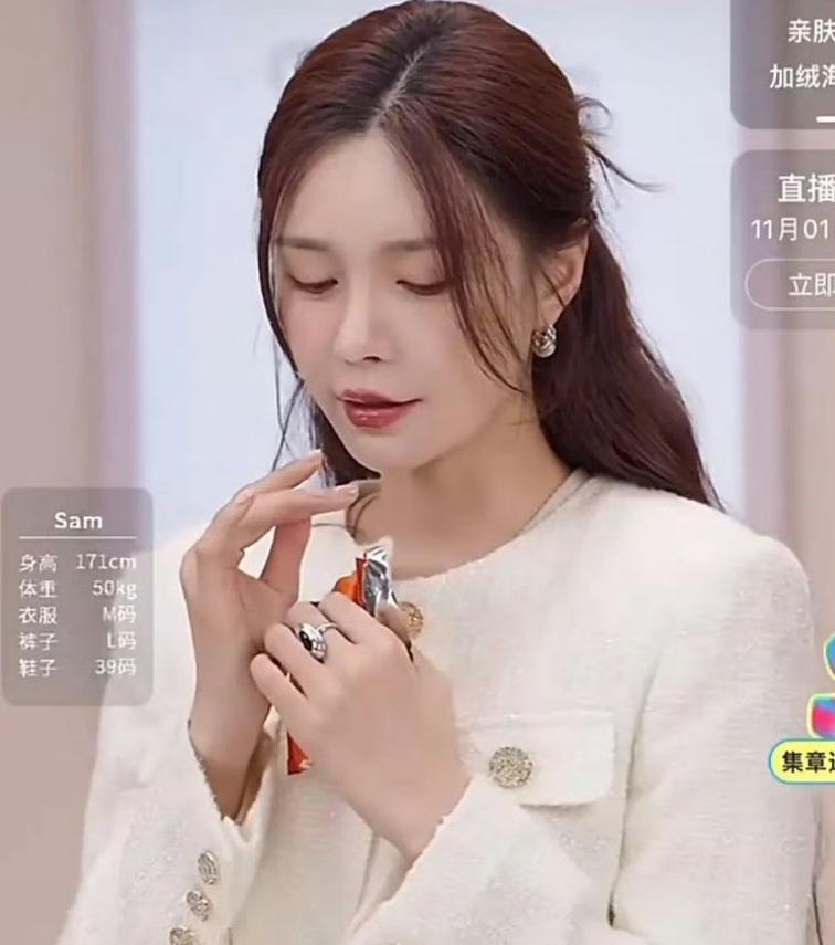 在最近的这场直播中,赵露思没有延续以往的翻车妆容,此次的妆容和造型都比较干净,虽然依旧是“变脸”的状态,至少比之前的烟熏妆看着舒服多了。