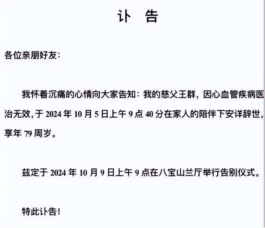2024年10月5日,王骁的父亲王群因为心血管疾病突然逝世。