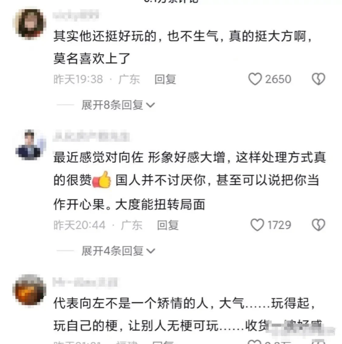 三、细节之处见真章:向佐的回应与网友留言