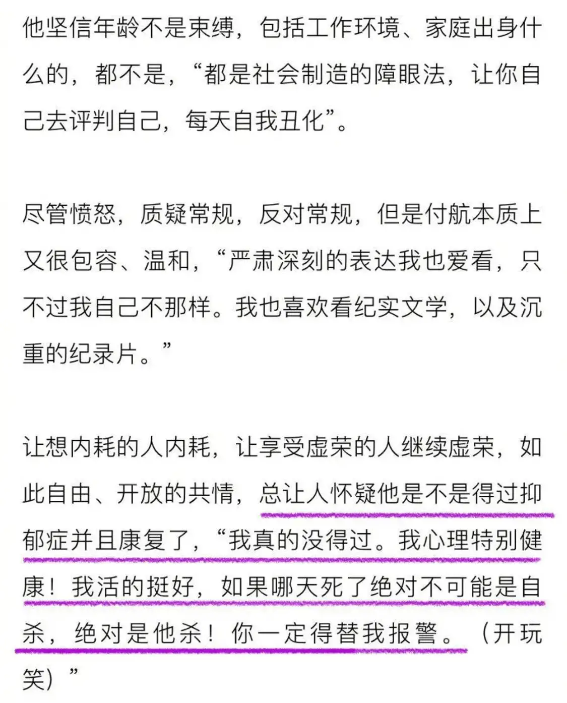 付航否认曾得过抑郁症:如果哪天死了绝对是他杀