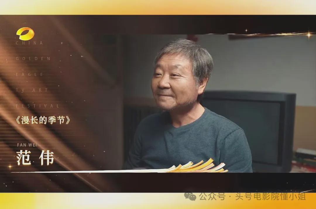 范伟凭借《漫长的季节》中的角色王响,获封金鹰视帝,拿下最佳男主角。未能到现场领奖的范伟,通过录制的视频发表获奖感言。