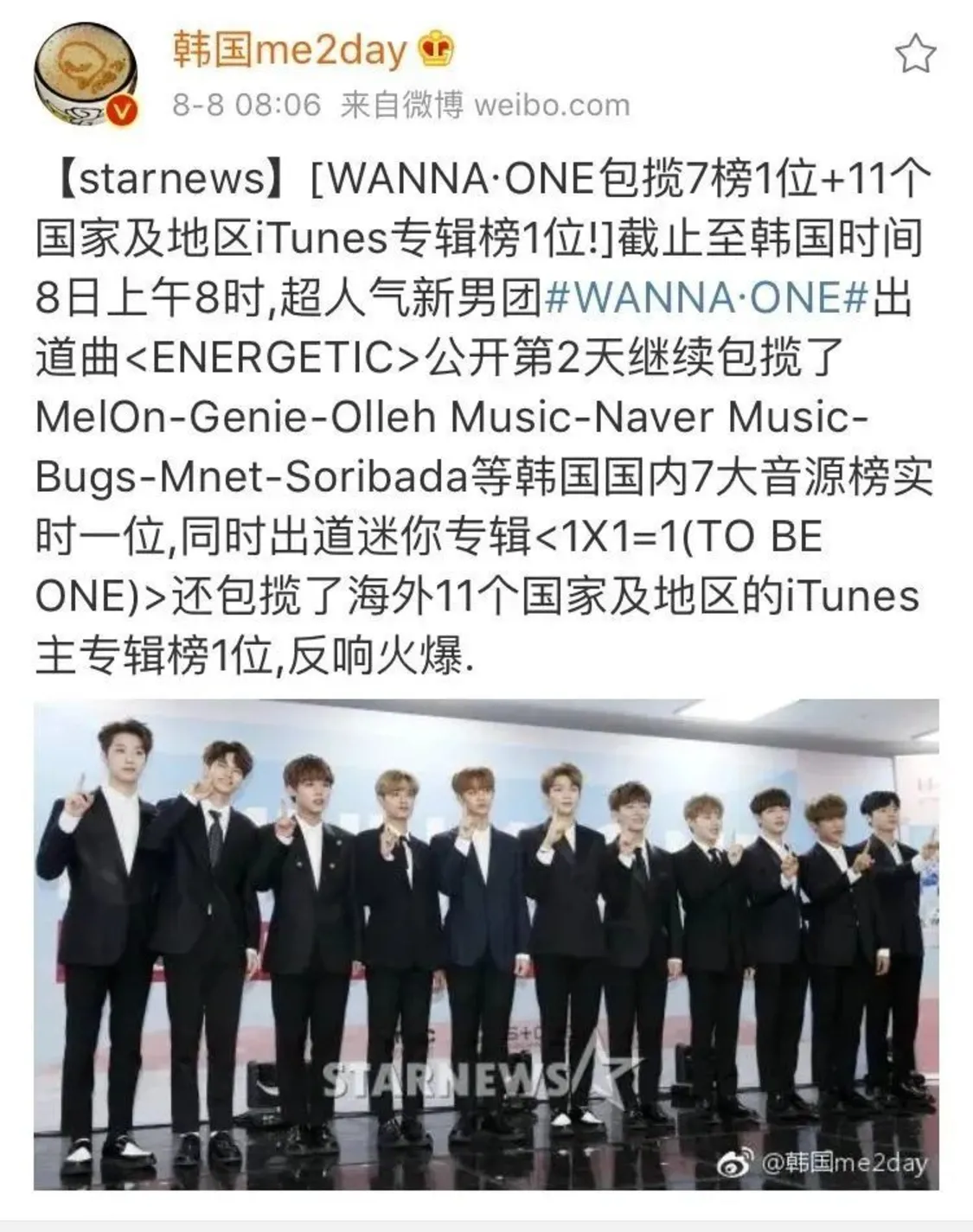 之后的限定男团Wanna One一出道就成为大势男团,横扫各大奖项。