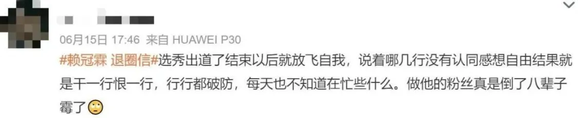 赖冠霖能做到真的说退圈就退圈,放下过去的一切,已经赢了很多了。