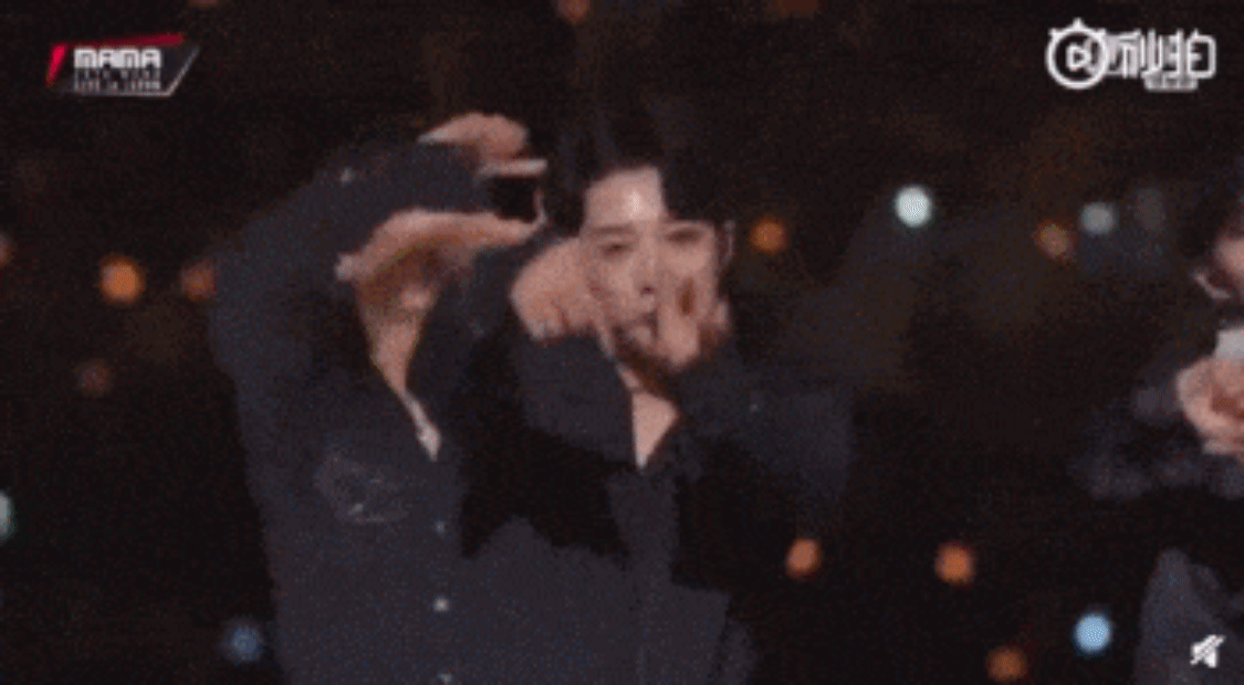 在MAMA的颁奖礼表演时,他的裤子从膝盖裂到了大腿根。