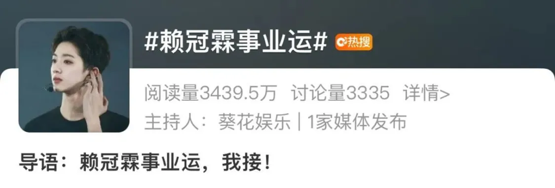 紧接着的#赖冠霖 事业运#也上了热搜?