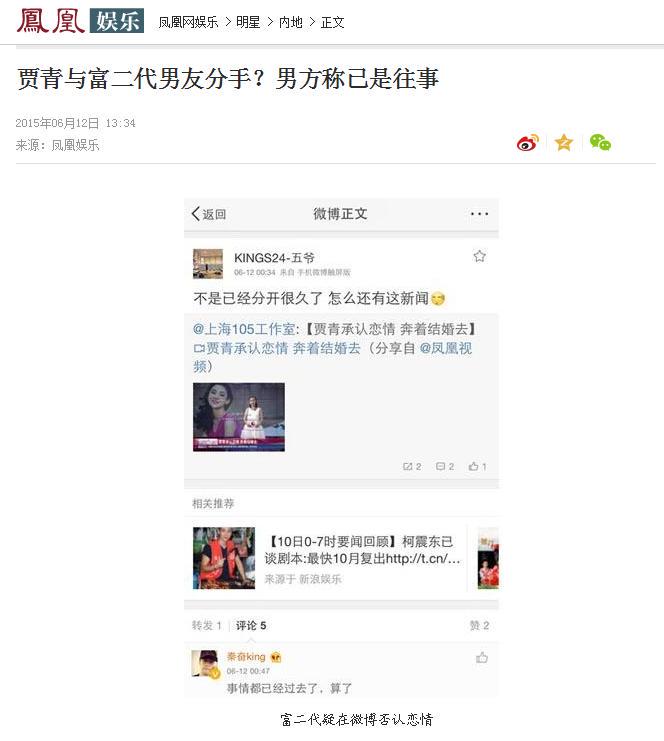 2015年,他身边的女友是女明星贾青,两人之前曾被拍到亲密同框,女方甚至还公开透露两人“好事将近”,却不料被男方出面否认,迅速打脸。