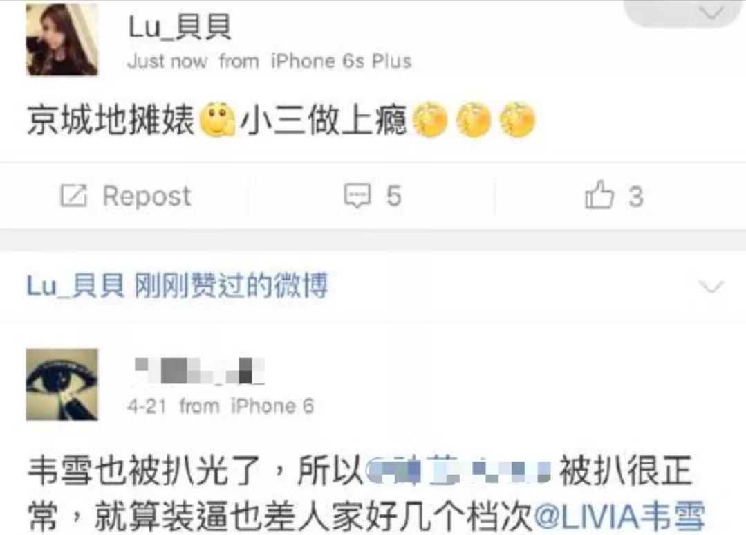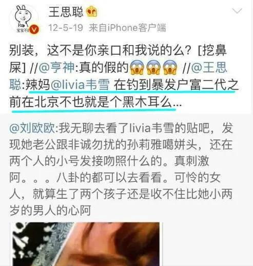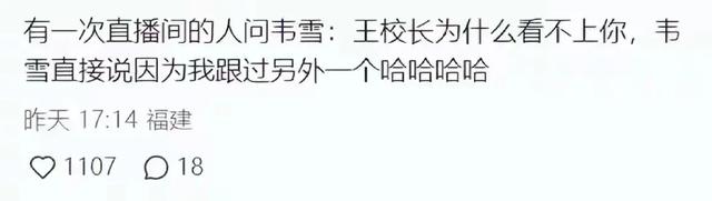 尤其是当时王思聪也发文内涵,骂韦雪是“帝都地摊biao”,也令人浮想联翩。