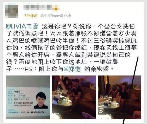 随着爆料大军的增加,还有网友直接甩出韦雪的身份证照片,并说她年龄造假,以及其不堪的发家史:“找俩孩子的爸把你捧红,又找上海男人给你开店,靠男人就别说是自己的钱!”