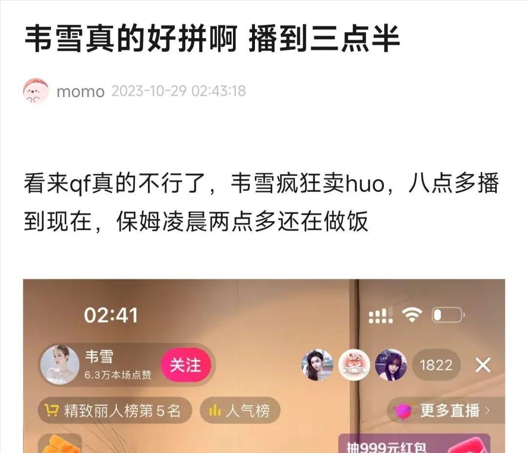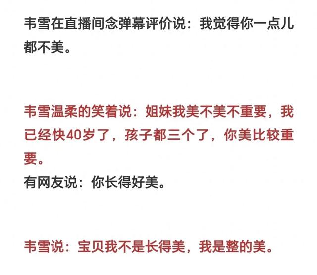 因为直播过程中,面对的无论是何种状况,韦雪都能轻松对答,情商高到令人望而却步。