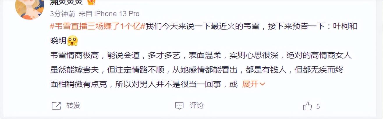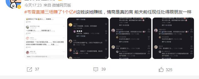 最近,网红韦雪因为三场直播赚了1个亿上了热搜,但离奇的是下边网友的评论基本都是: