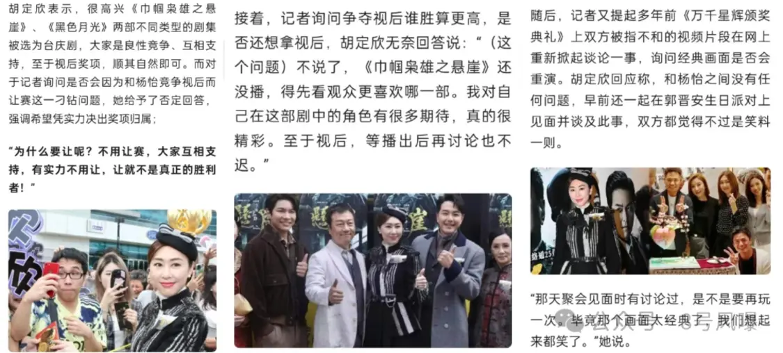 尽管后来有媒体指出,在镜头之外,杨茜尧的表情迅速变得冷漠,但至少在公众面前,她和胡定欣之间的互动显示出两人的关系是友好的。