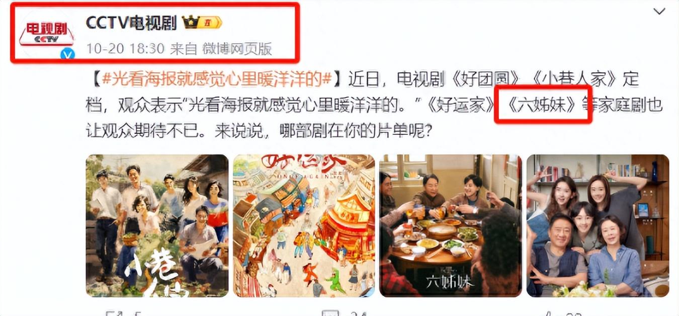 《人世间》大火,《父母爱情》更是翻来覆去的播,央视当然也看到了这块肥肉,这不,同为年代剧的《六姊妹》要来了。