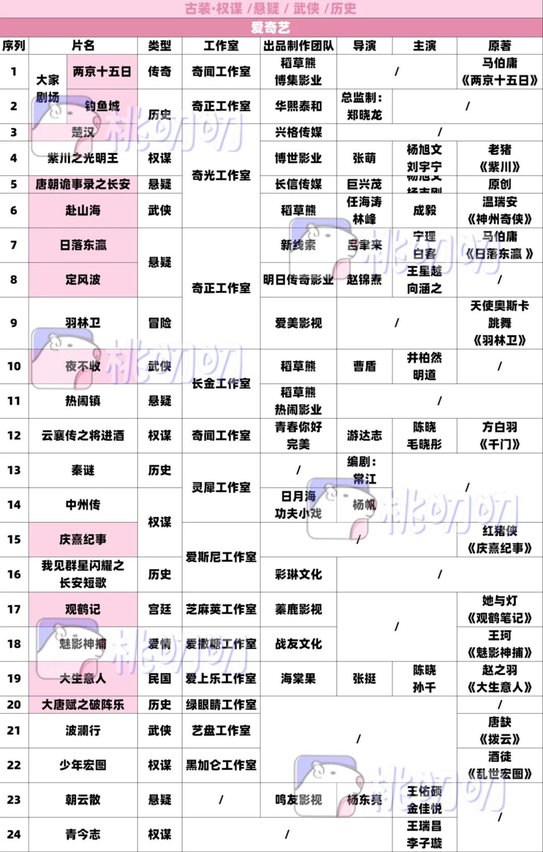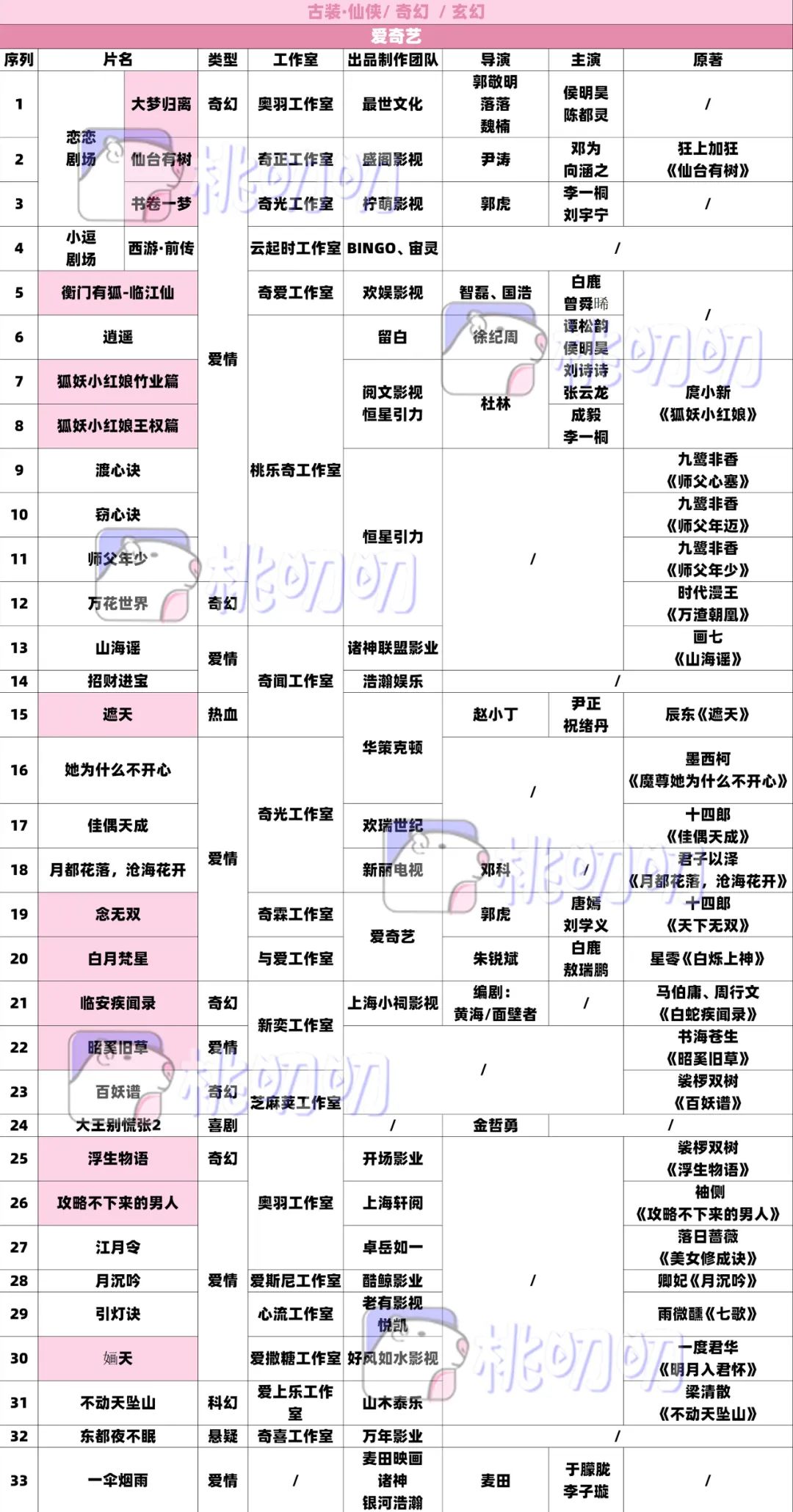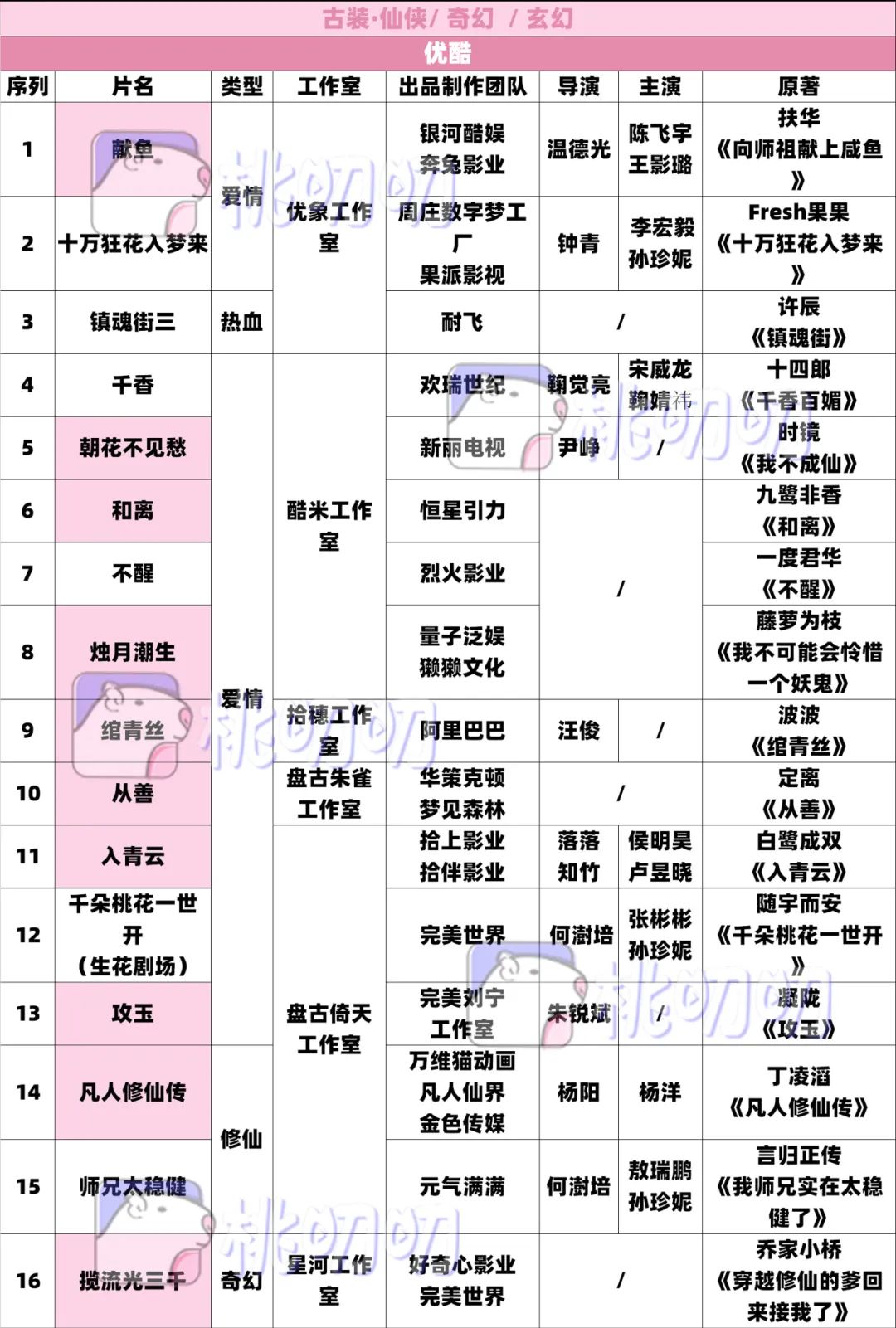 叨叨以古装剧和现代剧为大分类,将各家片单分别分为了纯古偶、古装奇幻、古装奇谋、纯现偶、现代悬疑和现实主义。看看接下来1—2年,还能端上哪些硬菜或黑马爆品吗?