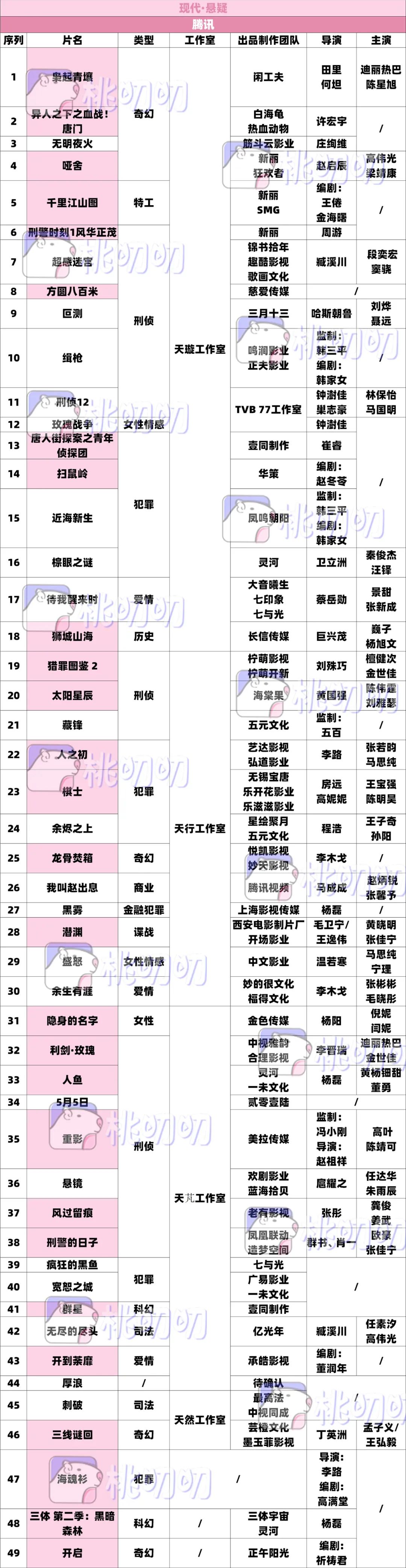 加上其他非现代剧集中悬疑题材的剧,三个平台共有155部悬疑剧待播。