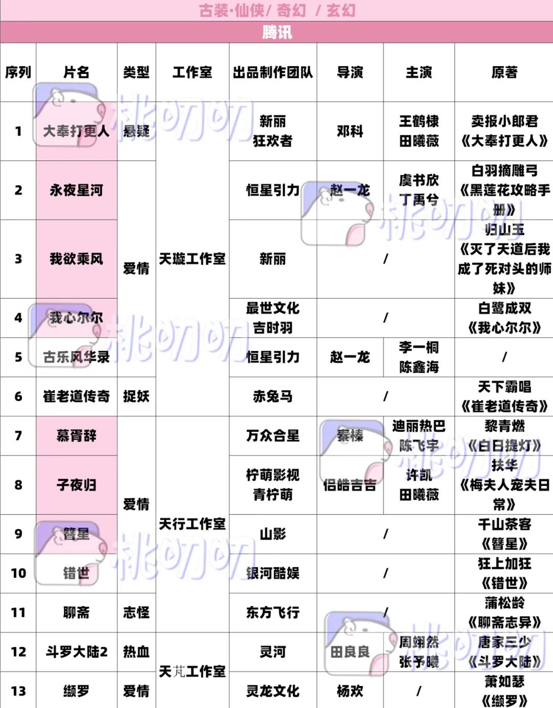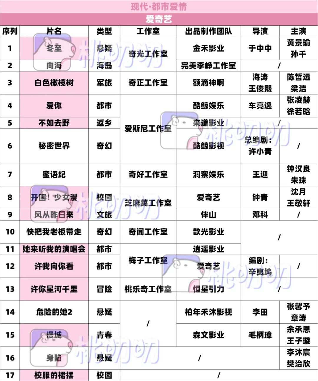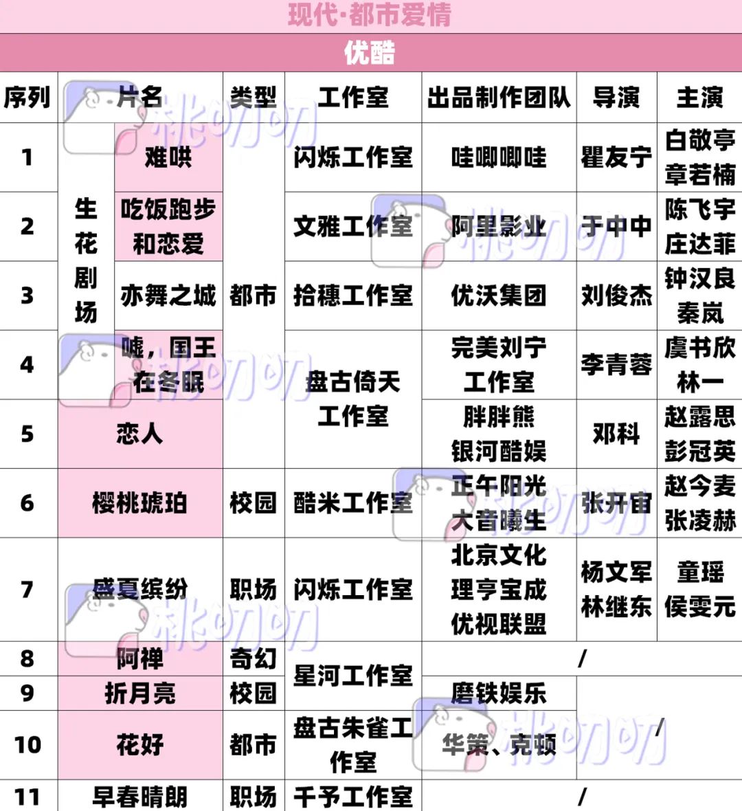 纯粹的现代偶像剧,各家都安排较少,也基本上是比拼网文原IP和明星阵容。