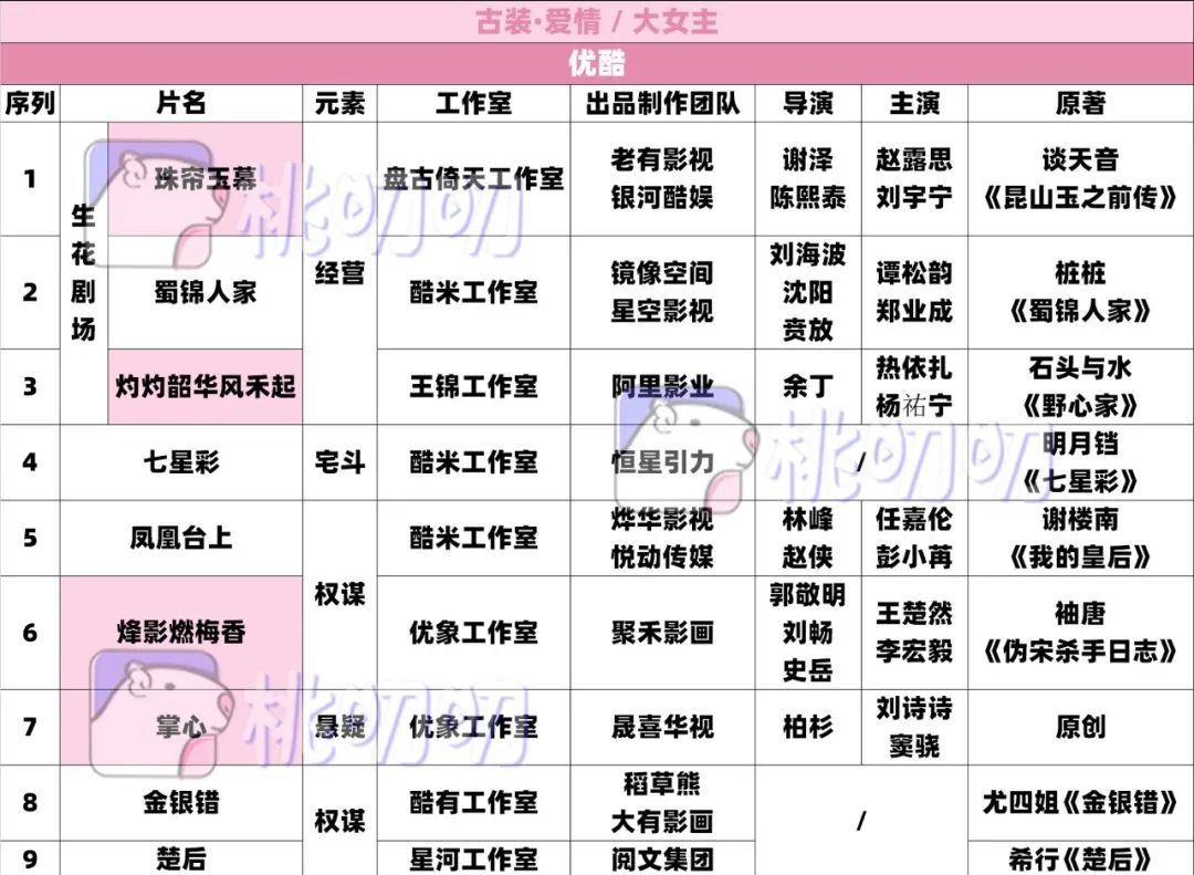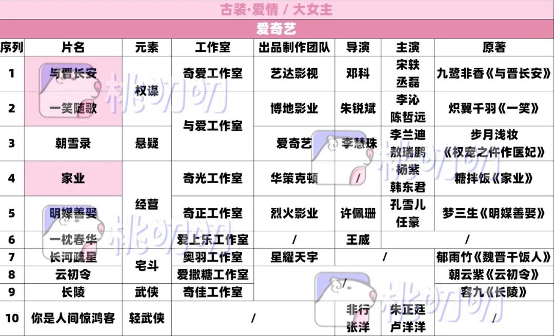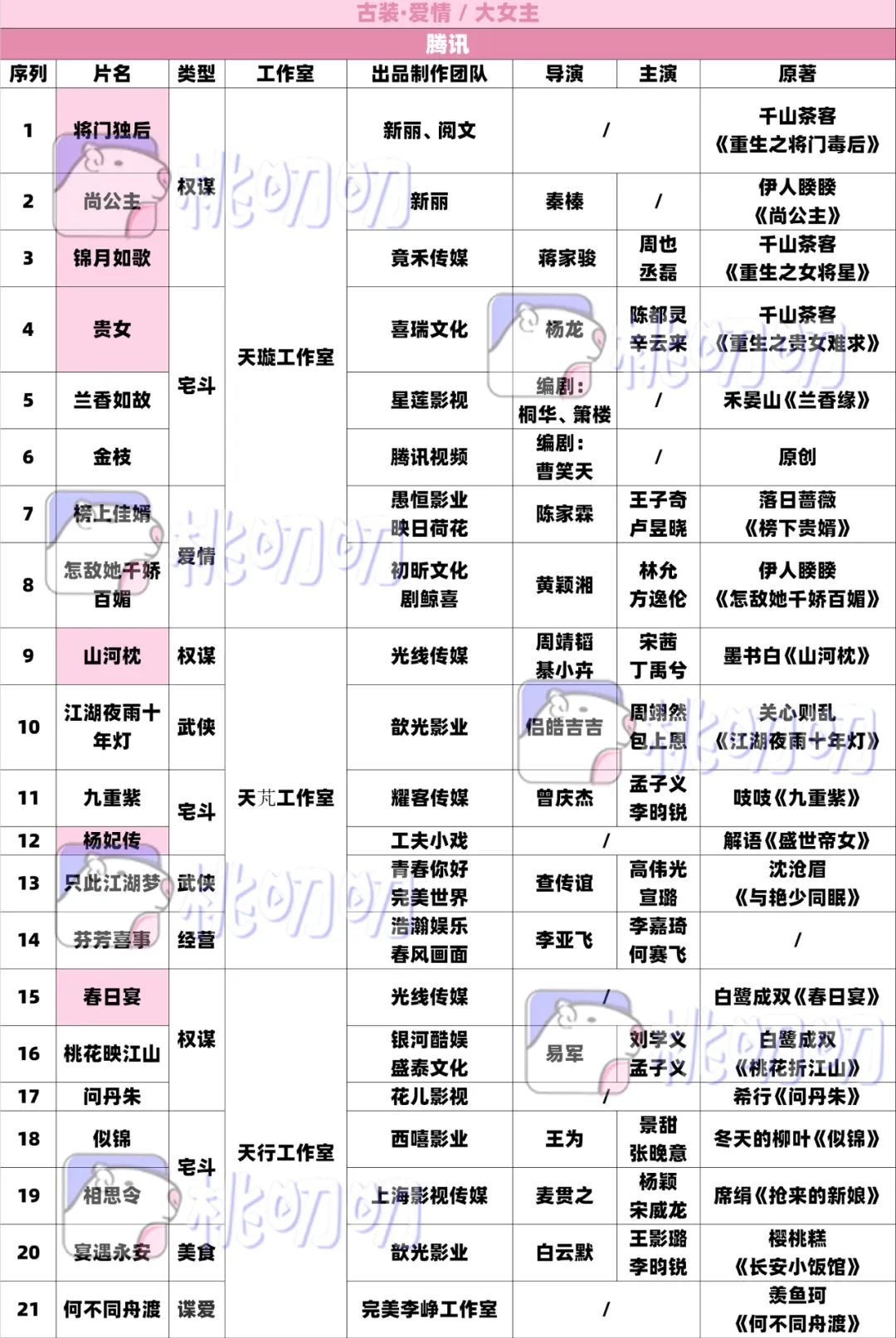 爱奇艺的《与晋长安》和腾讯的《锦月如歌》都是女将军,有点撞型,题材扎堆必然分流,如何卷出创意,对大家都是考验和挑战;《将门独后》和《云初令》《山河枕》也都是将军府女主重生的设定;未拍剧中,《春日宴》和《杨妃传》也是大女主。谁能脱颖而出?叨叨觉得,一切还是先有个好剧本!尤其所谓流量艺人脱水后,我们还是期待更多剧捧新人!