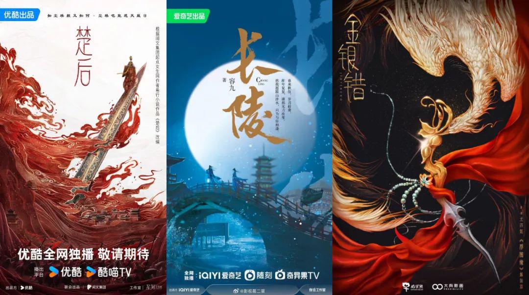 优酷则是与新丽、华策、完美世界等合作头部项目,比如《献鱼》《攻玉》《绾青丝》等。
