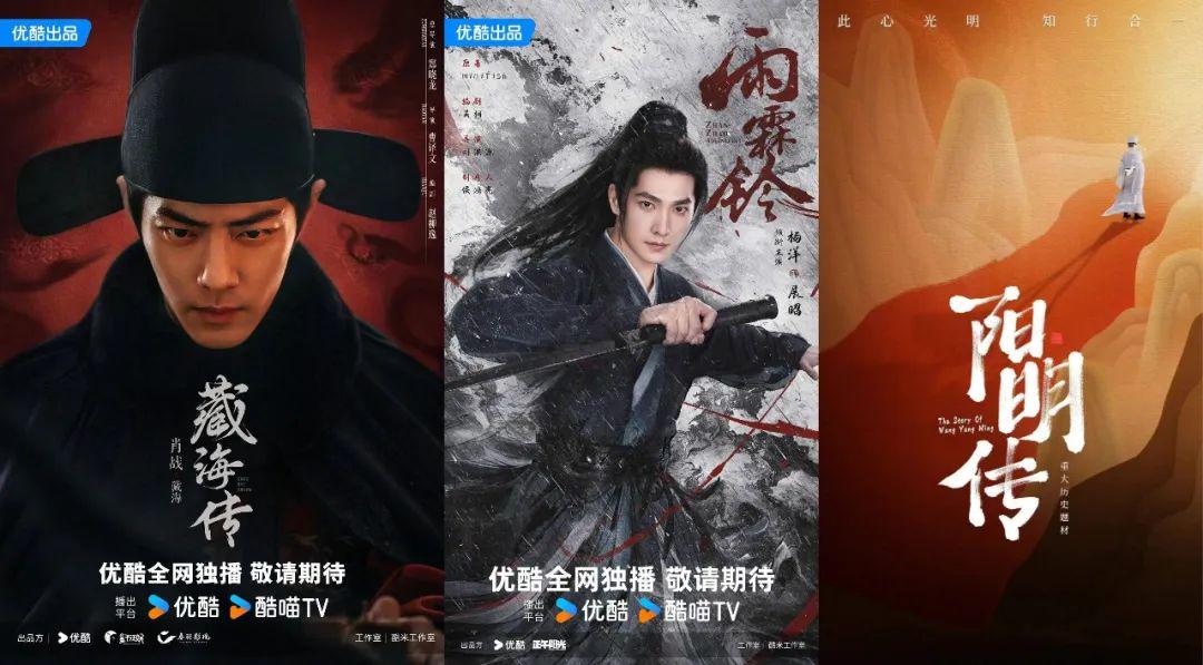 相比之下,优酷把更多力气放到了古装上,女性爱看的仙侠奇幻题材16部,男性爱看的权谋、历史、武侠题材17部,外界常说的优酷5大S级剧有4部都在其中,包括《藏海传》《雨霖铃》《阳明传》《长安二十四计》,优酷还在继续它“在精不在多”的路线。