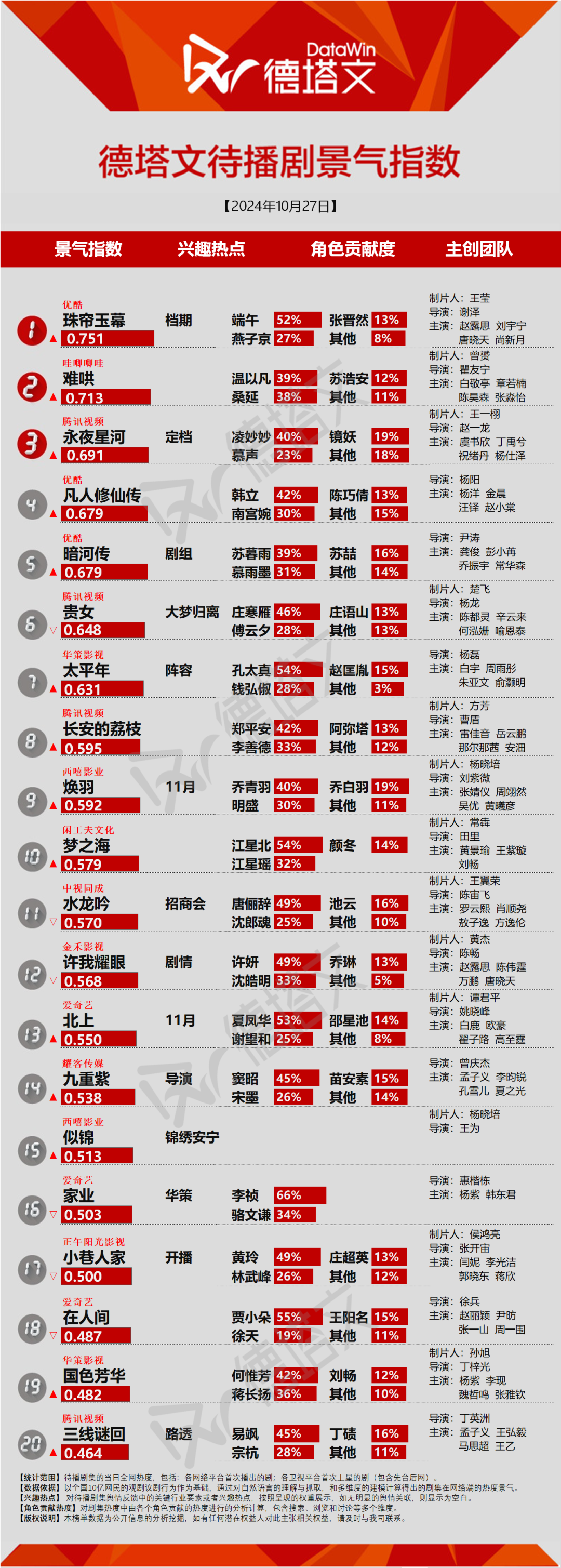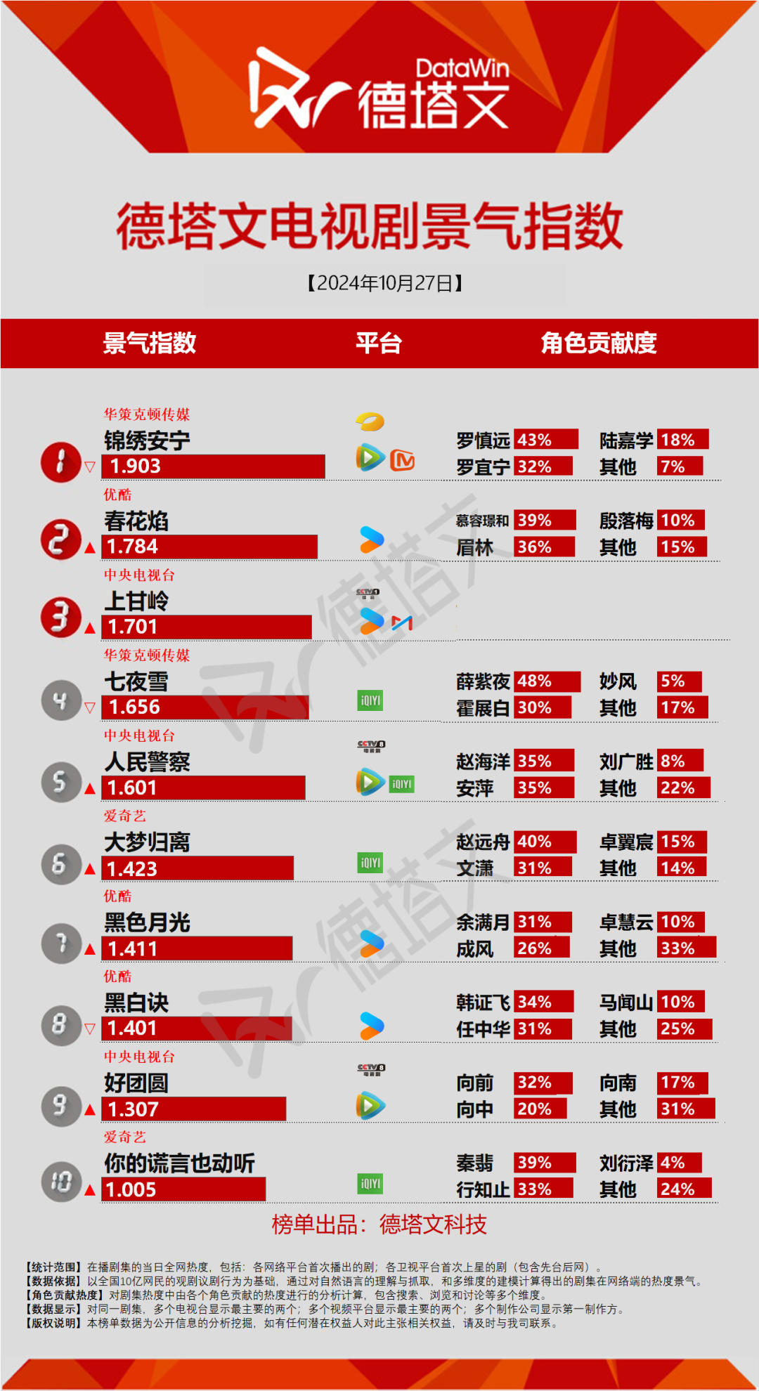 4、数据覆盖首次上星的电视剧和首次播出的网剧。