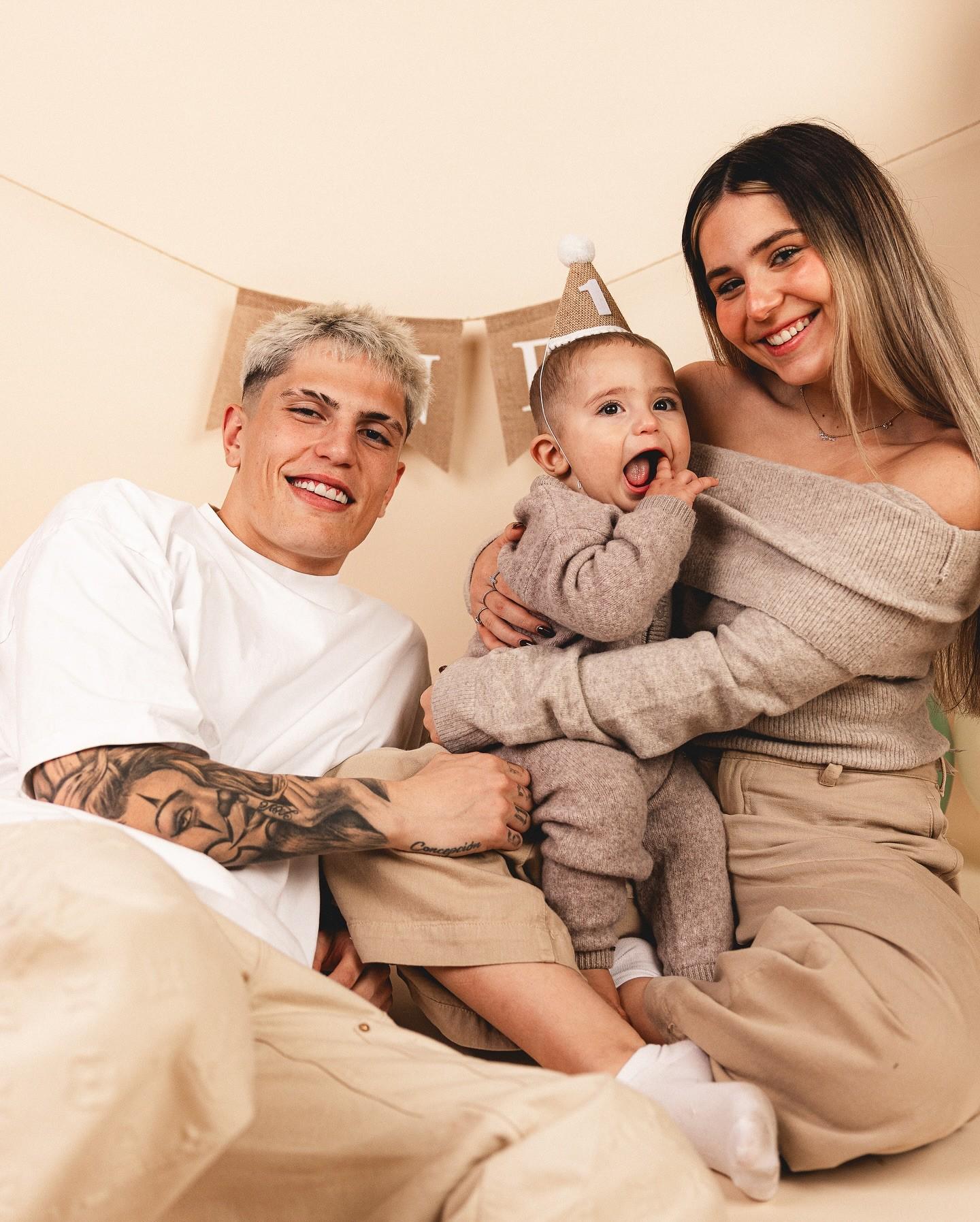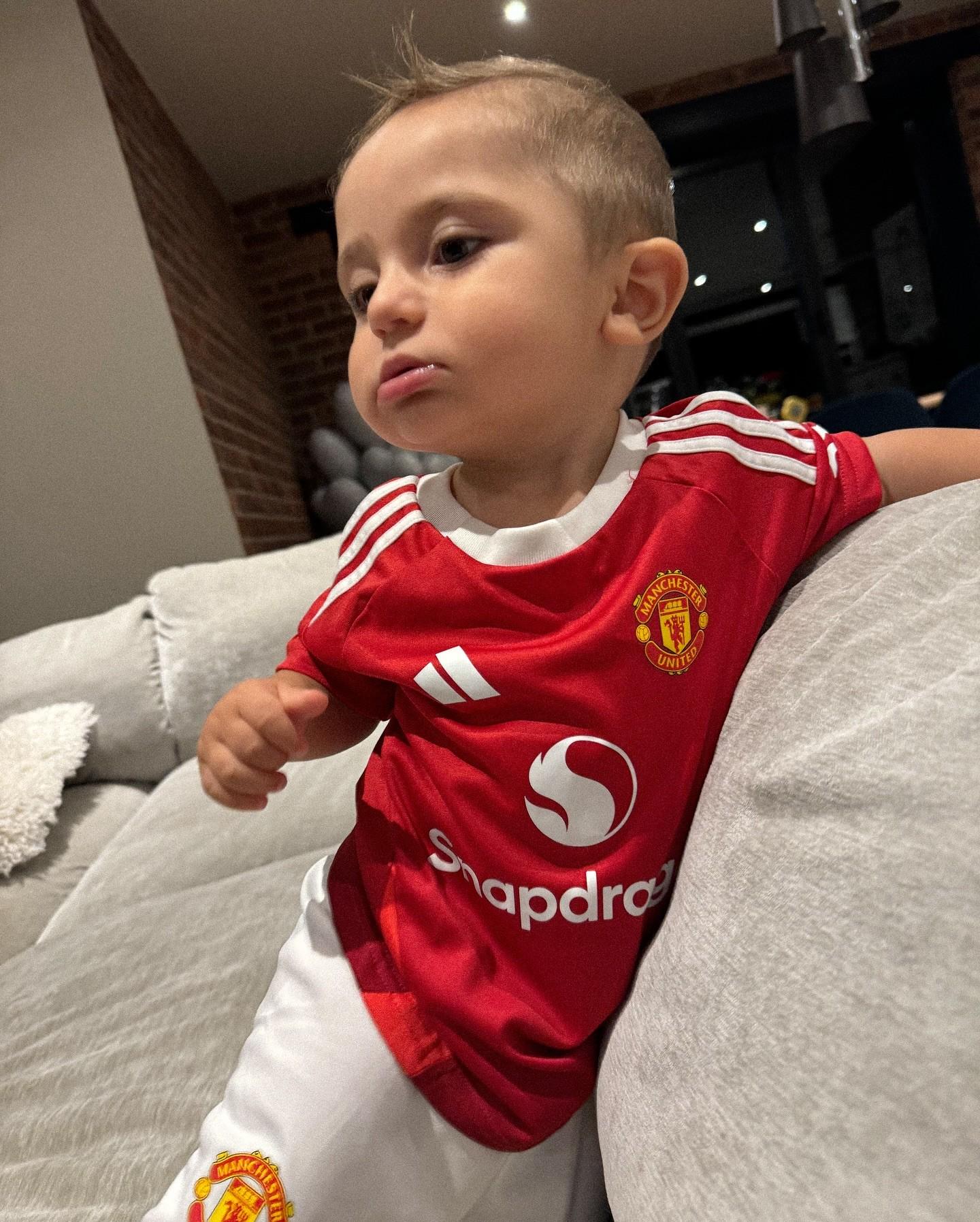 曼联20岁前锋加纳乔在社交媒体晒照,他为儿子恩佐庆祝1岁生日。